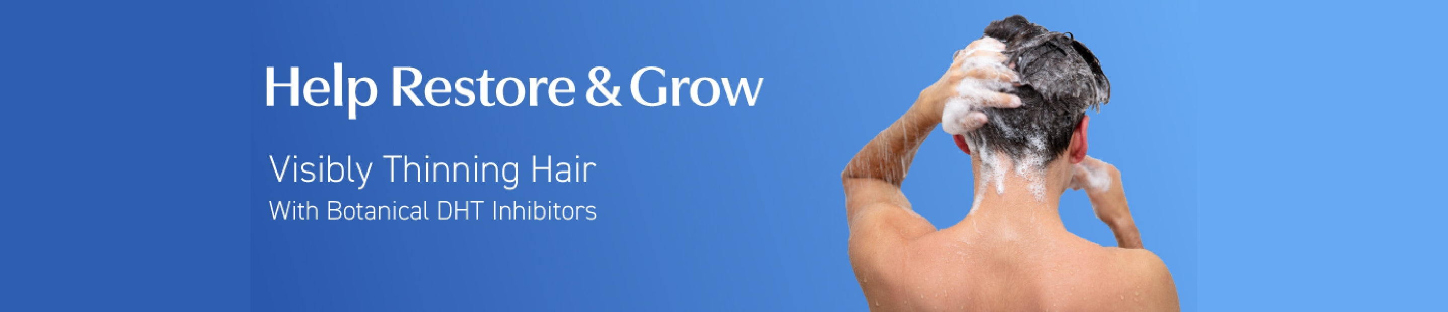 Inhibits DHT, the hormone linked to hair loss, to promote growth, & prevent shedding.